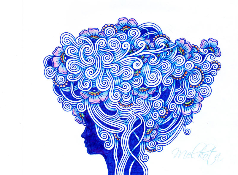 Начиналось всё вполне невинно - просто завиток, который впоследствии утонул где-то в центре "причёски". Да и "причёской" это облако стало уже под конец и как-то неожиданно для меня самой ![]()