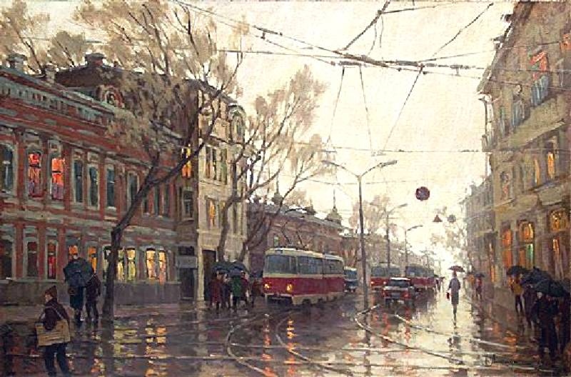 Лопнул, как медная бочка, Неба пылающий край. В звездную изморозь ночи Бросился алый трамвай! (Роальд Мандельштам, «Алый трамвай») Шел трамвай десятый номер, На площадке кто-то помер. (Старинная городская песня) Над ними провод с напряженьем, Он подает вагону ток, Трамвай по городу в движенье На север, запад и восток. (А. Крючков, заместитель генерального директора ГУП «Мособлэлектротранс») Недавно мне открылось новое знание. Оказывается, трамваи – явление не просто электротранспортное, но еще они суть источник романтического вдохновения и ностальгических раздумий. Вы спросите – как мне это открылось? Дело в том, что я люблю побаловать читателей своего блога картинами разных авторов. А набрав разнообразных картин, ставлю вопрос на голосование: что больше понравилось. И вот оказалось, что если на картине присутствует трамвай – она гарантированно выходит на первое место! И комментарии, как правило, весьма вдохновенные. Почему это происходит, что такого в трамвае, то ли постоянный ток стимулирует энергию Ци наподобие душа Шарко, то ли что другое – ученым еще предстоит разобраться. Но трамвай действительно вдохновляет и поэтов, и художников (картины прилагаются – к сожалению, можно только 5 иллюстраций, это мало, можно было бы намного, намного больше...), и бардов: «Трамвайчик» Леонида Сергеева «Старый трамвай» Сергея Матвеенко «На трамвайной остановке» Евгения Клячкина «Трамвай №39» Богушевской (исполнение с Ивасями) Ретро-песенка на идише-русско-украинском про киевский трамвай |
