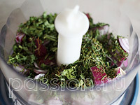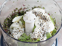У зелени удалить жесткие веточки, измельчить ее. Кефир хорошо взбить венчиком, добавить измельченную зелень и перемешать.