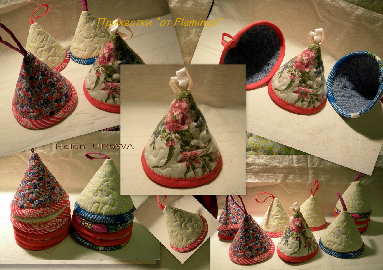 пока в деле не пробовала, только прикладывала к ручкам кастрюль, да крышкам, но мне кажется, они удобнее стандартных. Ирочка, спасибо за подробное описание! Обязательно посмотрите, какие чудесные прихватки у Иры, мои попроще... Фотографировала ночью, но и так все видно :)