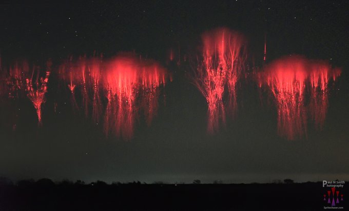 Астрофотограф Пол Смит из Оклахомы сделал целую серию снимков спрайтов, появившихся над окрестностями города Талса в апреле.