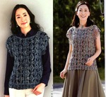 Женственная модель, выполненная крупными ажурными листьями, расположившимися по всей площади деталей изделия. Очень красивый цвет корицы. В основе выкройка с рукавами реглан.