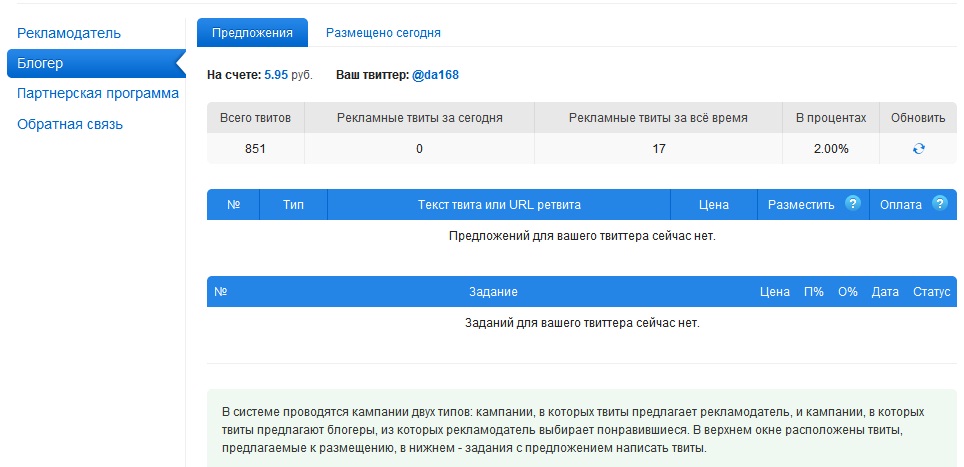 И помимо твиттера, там задействованы и фейсбук с ЖЖ. Сайт и регистрация здесь. Предупреждаю сразу что регистрацию лучше начинать в качестве блогера, а потом уже рекламодателя если такое желание возникнет.