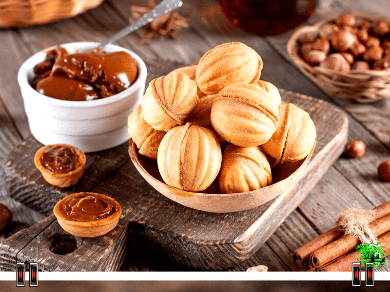 Сгущенка с измельченным грецким орехом.