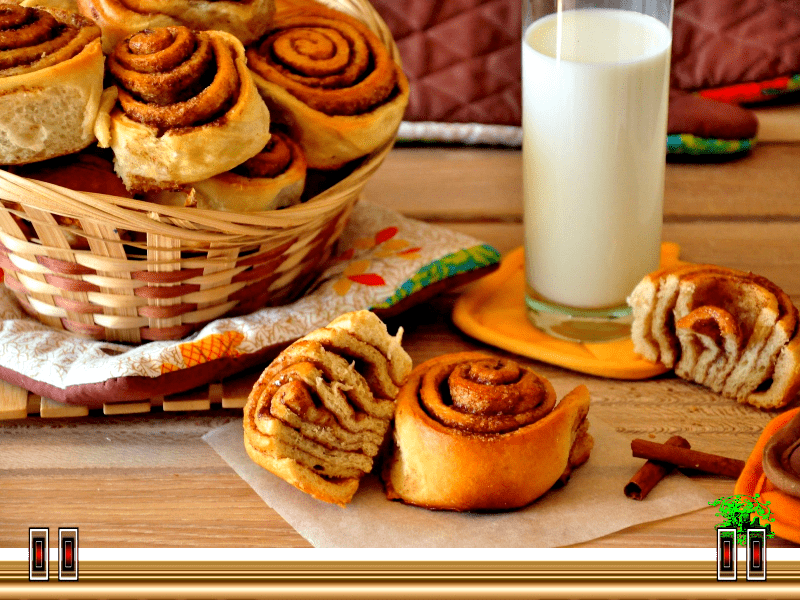 Сверху посыпать сахаром и корицей .Свернуть в рулетик. Разрезать его на несколько частей и немного примять руками, чтобы получились булочки