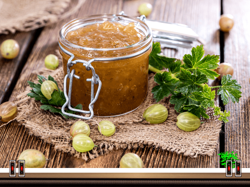 Подготовленный крыжовник положить в стеклянный контейнер для микроволновой печи и накрыть пищевой пленкой оставляя небольшой зазор для того, чтобы из него выходил пар. Готовить в микроволновой печи в течение 4 минут на максимальной мощности. Когда закончите, удалить крышку / пищевую пленку и перемешать. Варить еще 2 минуты.