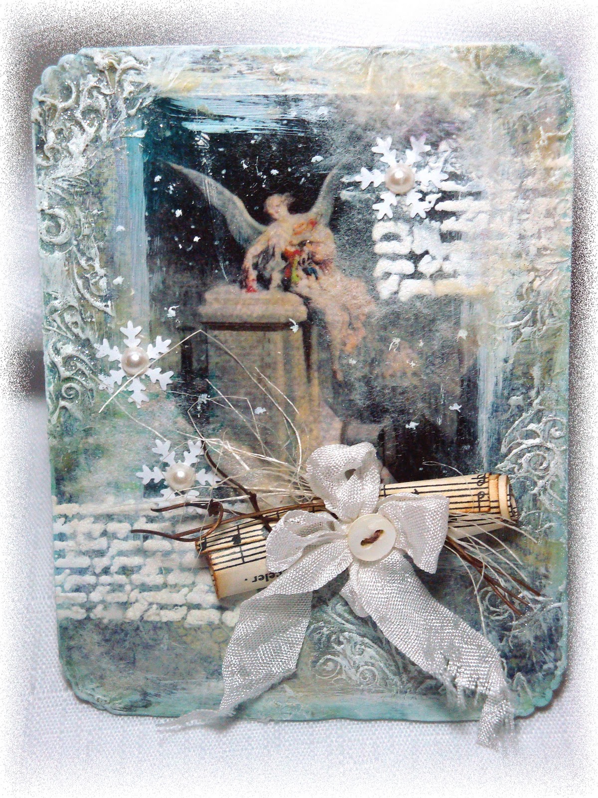 По правилам последнего задания, композицию для вдохновения мы должны выбрать сами. По каким-то необъяснимым причинам, выбор мой сразу пал на песню Нины Матвиенко "Квитка душа". Я не являюсь ярой поклонницей творчества Нины, но на эту песню уже давно обратила внимание и она надолго запала мне в душу. Какое-то есть в ней волшебство, дух Рождества. Хотя, конкретно про Рождество в ней не сказано не слова))) Послушайте сами. И посмотрите на открытку, которая сотворилась под эту песню.