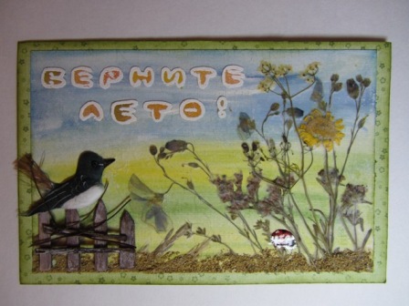 В рамках Машиного Ladyjam проекта "Создадим альбом вместе", помимо странички я делала подарочек замечательному человеку, Леночке Леди Осень . Вместо положенной открытки у меня получился "букет". Кусочек летнего Крыма улетел в дождливый, но красивейший город мира - в Питер.