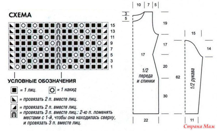 Ажурный узор: вязать по схеме.