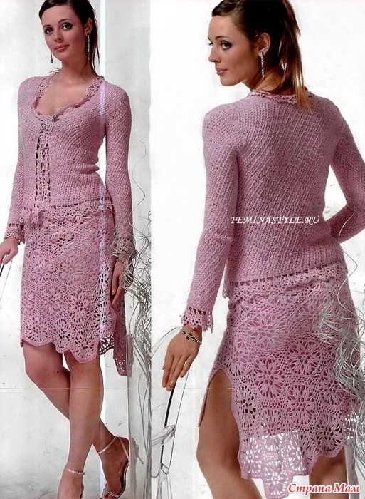 Жакет выполнен спицами и крючком, а юбка - крючком