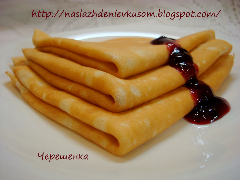 [400x300] Разновидностей блинов очень много! Я готовлю разные: на молоке, заварные, дрожжевые, манные, овсяные, мультизлаковые, гречневые… Да всех не перечислишь))) Сегодня я хочу поделиться с вами обыкновенным, базовым рецептом блинов, который передается у нас из поколения в поколение… Первый раз, я помню, попробовали такие блинчики еще у моей прабабушки, которая была кубанская казачка и жила в станице в Краснодарском крае… Потом с удовольствием кушала их у моей бабушки, потом у мамы, а сейчас радую ими своих деток! Рецепт очень простой, проверен годами, очень демократичный по своим ингредиентам… Блинчики получаются тоненькие, с небольшими дырочками, очень красивые, зажаристые и вкусные! На основе этих блинов можно делать блинчики с припеком, добавив в тесто то, что вам больше нравится. Например порезанное кубиками яблоко или грушу, рубленые яйца с зеленым луком, тыкву или морковь… Тут уже работает ваша фантазия… А можно нафаршировать их чем-нибудь и свернуть конвертиками или мешочками. У меня любимая начинка это рис с печенью, а мой сын больше всего любит творожную начинку. А какие шикарные блинные торты можно сделать на основе этих блинчиков… Одним словом, я даю вам базу, а вы уже на ее основе делаете что пожелаете!