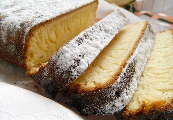Готовый кекс охладить 10 минут в форме, потом вытащить его и дать остыть полностью. Перед подачей посыпать сахарной пудрой и нарезать кусочками покрупнее.