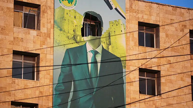 Вид на поврежденный плакат президента Сирии Башара Асада в Алеппо после того, как сирийская армия заявила, что десятки ее солдат были убиты в результате крупной атаки повстанцев, ворвавшихся в город, в Сирии 30 ноября 2024 года. REUTERS/Mahmoud Hassano