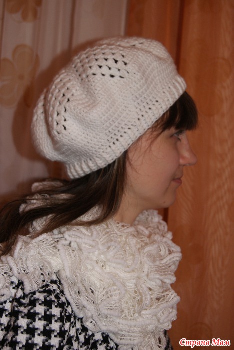 [показать]Коло 3: 2 лиц, накид, 1 лиц, накид, 2 лиц на першій спиці. Повторити для 2-й спиці. (7 п на кожній спиці).