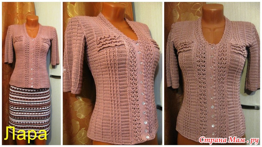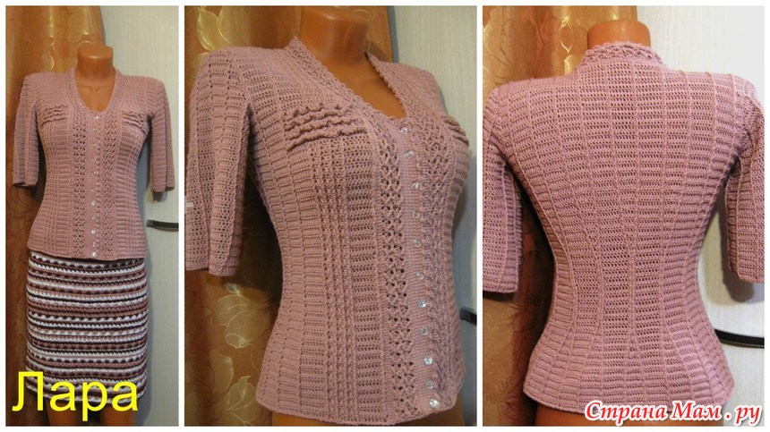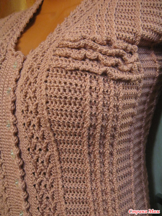 Здравствуйте, страномамочки. Хочу представить вам мою новую любовь. Жакет по мотивам платья "Винтаж" Ванессы Монторо(здесь живет он-лайн http://www.stranamam.ru/post/9401894/#comments).