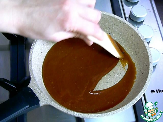 Вводим сл. масло и сахар и держим на медленном огне до растворения сахара |