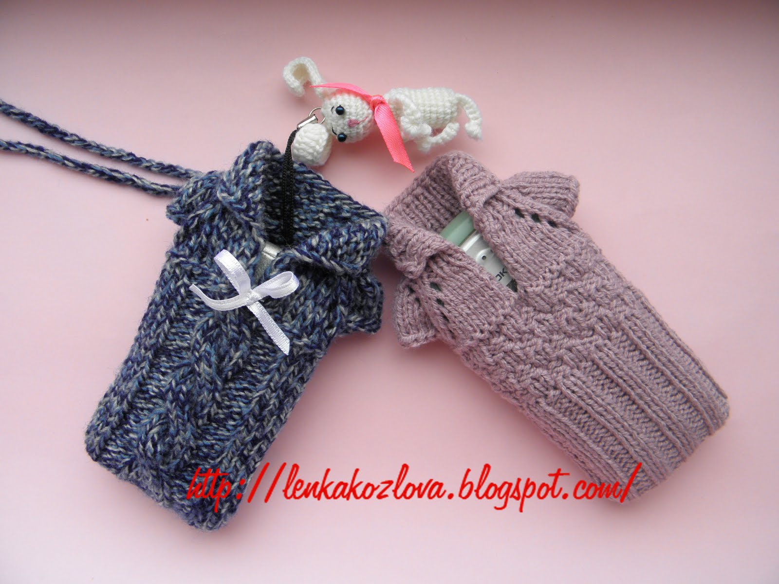 Скоро осень. Надо одеваться потеплей ;)) Связала два платиШка для....мобилок))))