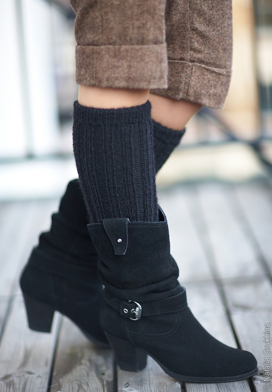 Совет: вязаные гетры можно носить по-разному: с юбкой и с брюками, с высокими сапогами или полусапожками, их можно заправить внутрь или одеть поверх обуви, кроме того, сейчас очень модно носить их с туфлями на высоком каблуке или даже с кедами.