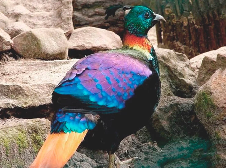 Эта потрясающе яркая птица относится к семейству фазановых и является национальным символом Непала. По красоте и насыщенности переливающихся всеми цветами радуги перьев, гималайский монал (лат. Lophophorus impejanus) уступает разве что китайскому моналу, признанному красавцу среди всех фазанов