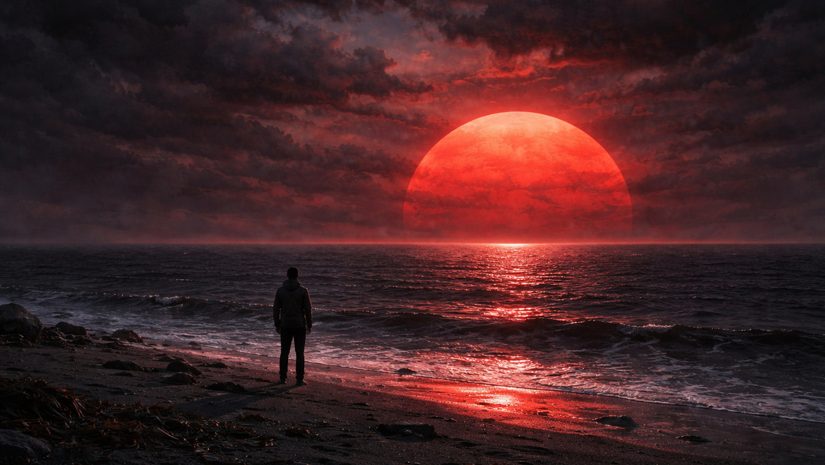 Огромное красное солнце — тусклое, раздутое, неподвижно повисшее над горизонтом. Тишина. Ни ветра, ни птиц, ни голосов. Только гигантские крабоподобные существа ползают по камням — последние обитатели умирающей планеты. И холод — пронизывающий, мёртвый холод вселенной, которая забирает своё обратно.