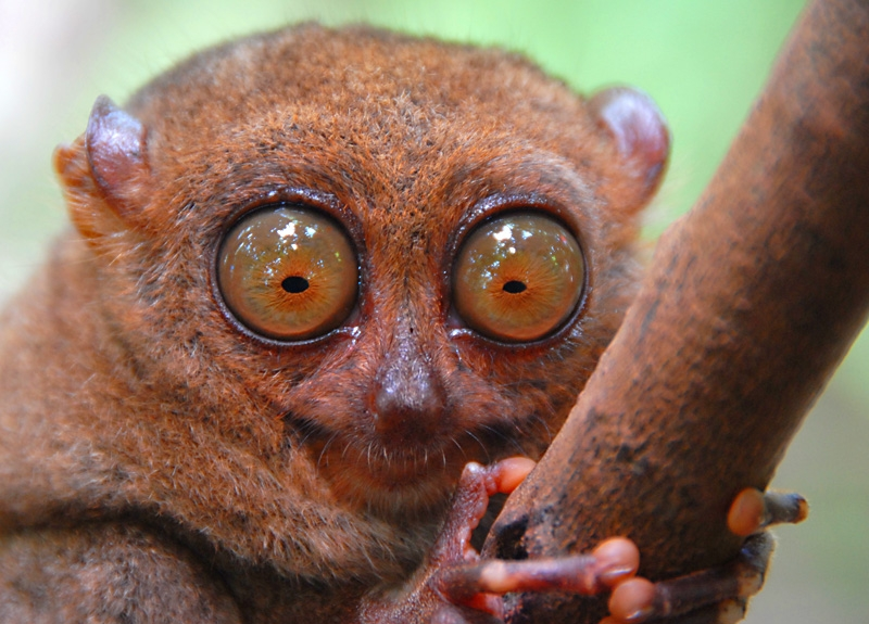 Правда король больно уж мелкий: в рослом, полном сил филлипинском долгопяте всего 16 сантиметров длины — он меньше человеческой ладони! Чтобы скомпоноваться до такой маленькости, обезьянке пришлось здорово миниатюризировать все свои органы: от лапок и шёрстки, до сердечка и мозга. Все органы, кроме глаз.