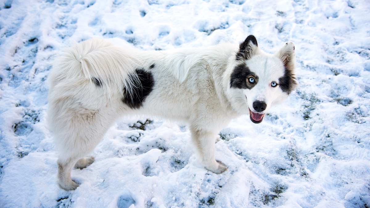 Эту собаку легко узнать по необычного окрасу: у нее черные, серые или рыжие пятна на белом фоне. А еще у нее нередко бывают разноцветные глаза: один голубой, другой карий. И, кажется, что она видит вас насквозь!