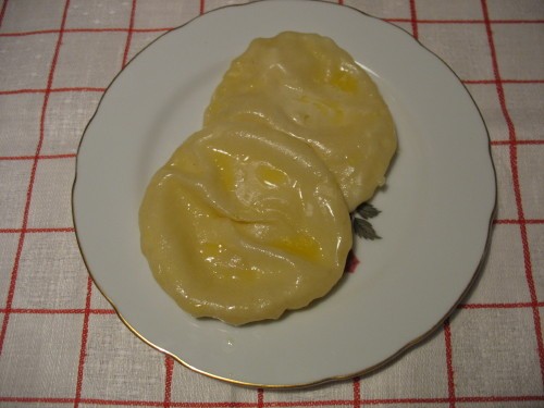Тесто пельменное, раскатывается тонко. На одну штучку идет примерно 40 г теста и 40-45 г сулугуни (натереть на терке). На раскатанный кружок теста выкладывается сыр, края собираются к центру, защипываются. Приплюснуть и отваривать в подсоленной воде. Подавать со сливочным маслом по 2 штучки на порцию. Эти квели мне понравились очень - даже холодные. Похоже,на макароны с сыром, а это сочетание вкуса мне нравится.