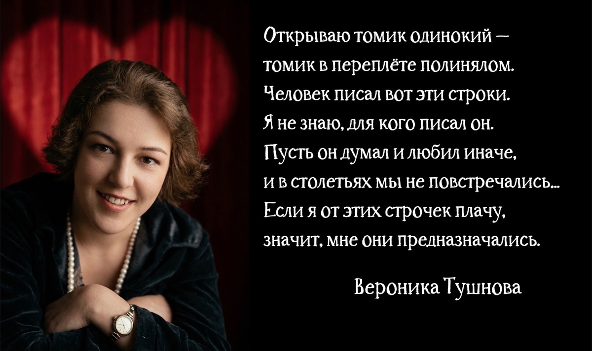 Творчество поэтической иконы 60-х Вероники Тушновой известно нам прежде всего по замечательным песням «Не отрекаются любя», «А знаешь, всё ещё будет!..», «Сто часов счастья», написанных на ее стихи, удивительно светлые, трагические и оптимистичные одновременно. За редкий и непривычный в средней полосе России облик её называли восточной красавицей, персиянкой - она была просто ошеломляюще прекрасна. И также потрясающе несчастна в личной жизни…