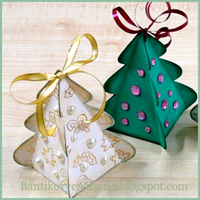 Еще одна интересная упаковка в виде елочки. Просто вырезать и склеить. Потом украсить - и ваш подарочек готов!
