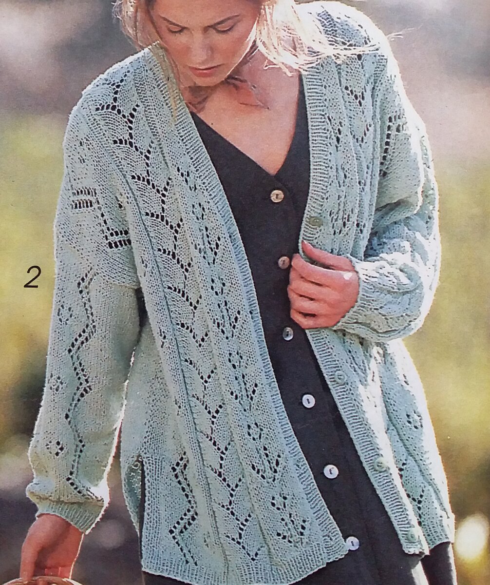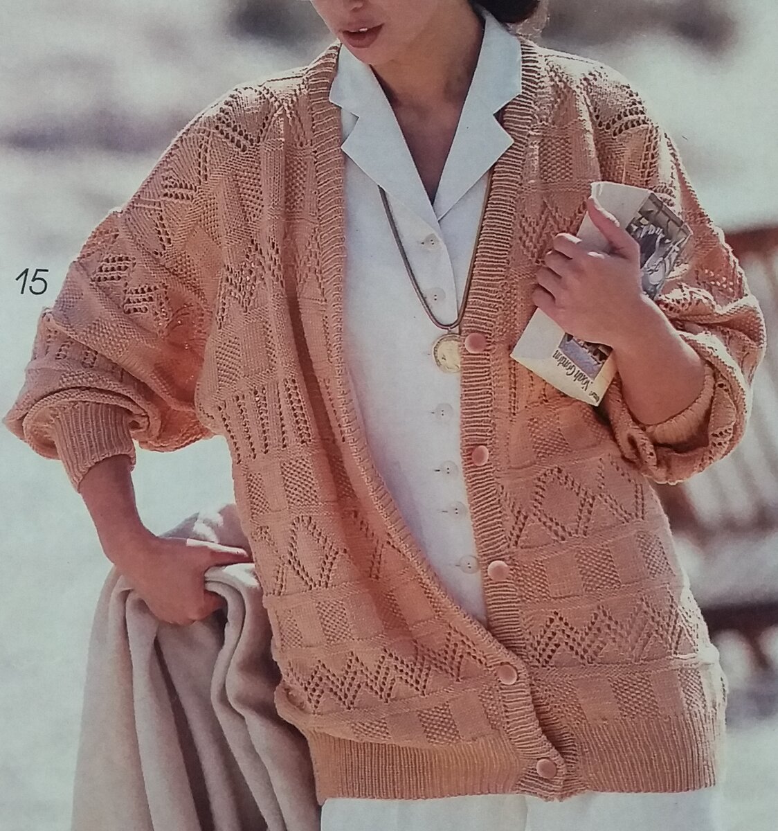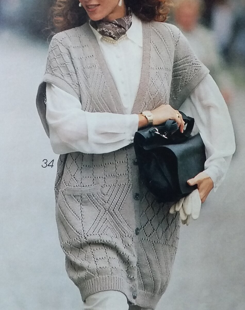 В джемпере используются три вида узоров: ромбы, коса и "путанка".