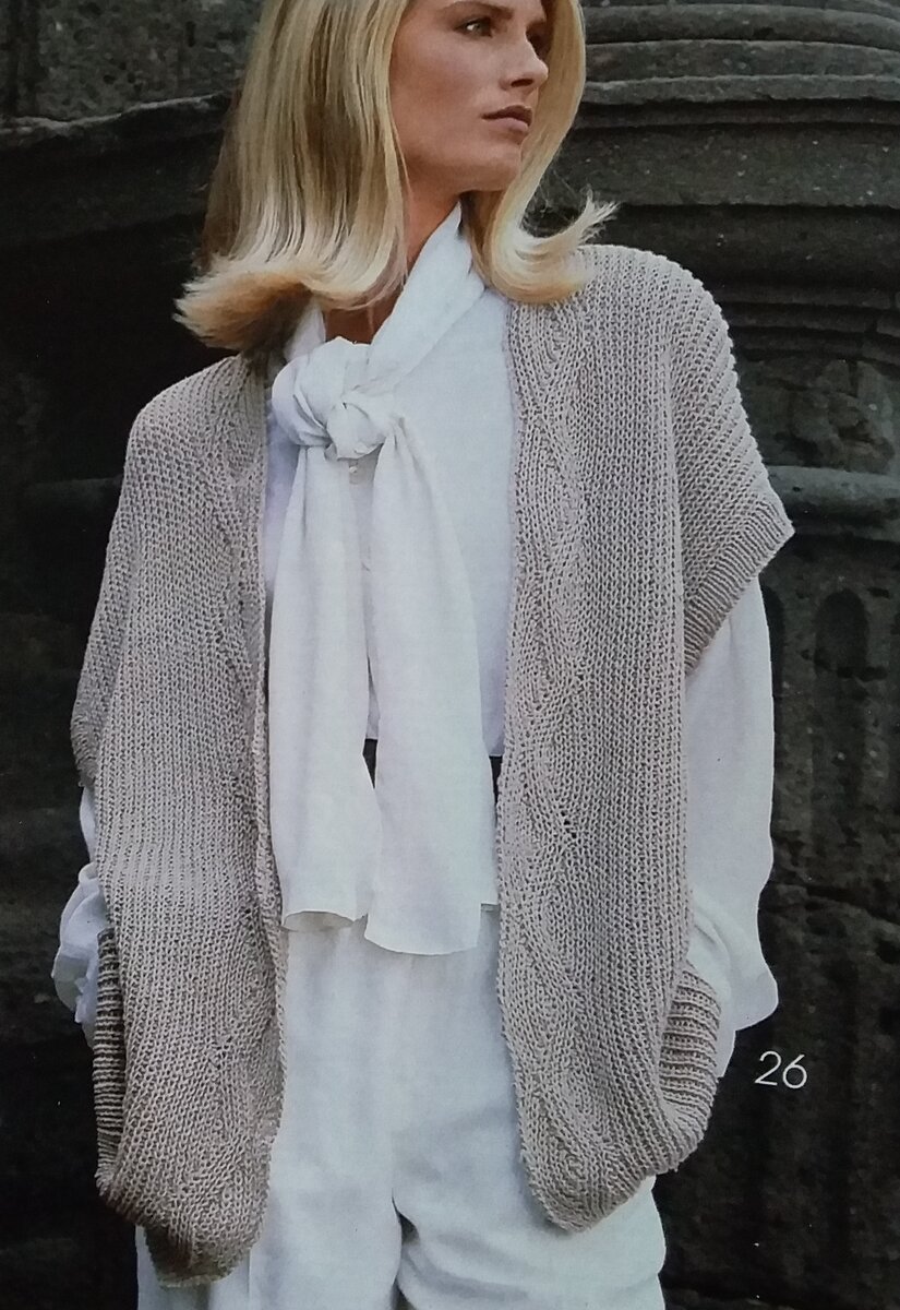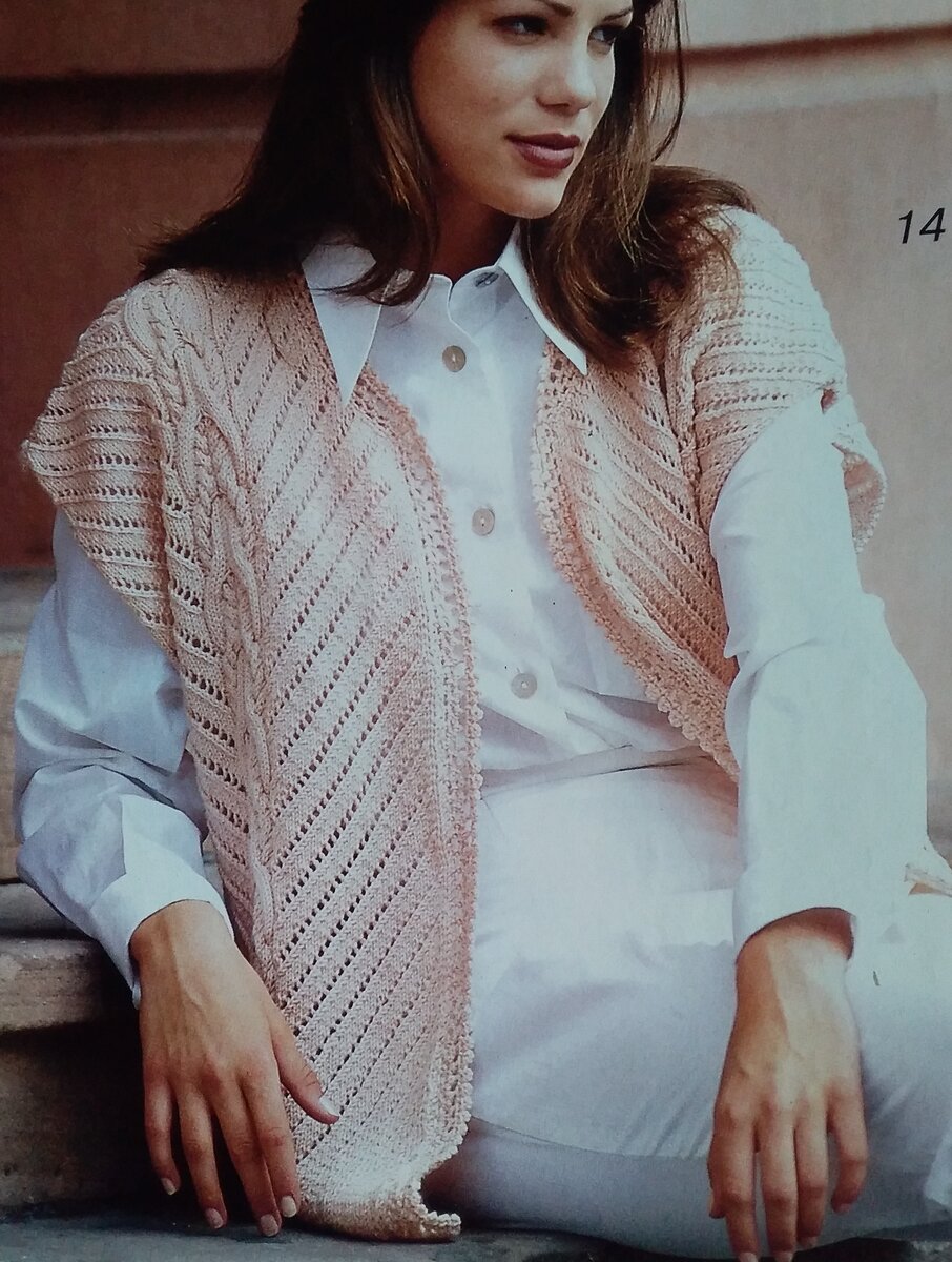 Внимание! Если вязать лицевой гладью, то надо набирать 90(98)110 п. На вырез горловины приходится 38(40)42 п., остальное – плечи.