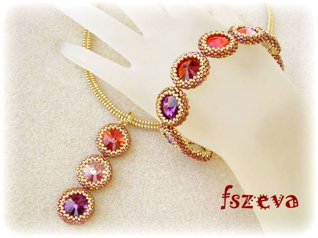 Круглые бусины размером от 3 мм до 8 мм хорошо смотрятся в этом колье и браслете, постепенно увеличиваясь от замочка до середины, сплетенные в технике ажурного жгута. Натуральные камни будут отличным выбором (если вы сможете подобрать необходимого размера для этого украшения). Кристаллический жемчуг хорошо смотрится в этом колье и с ним очень хорошо работать, можно подобрать различные цвета и оттенки. Автор этого проекта Синтия По.
