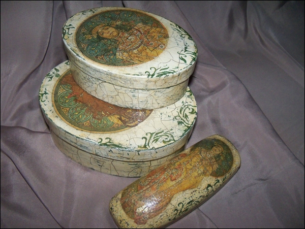 Очень понравился мотив, случайно наткнулась на рисунок этой молодой леди в интернете и родилась идея шкатулки.