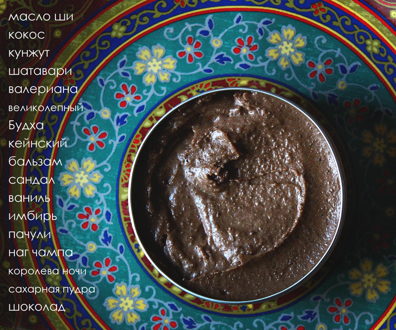 "...А может, восточный скраб? Пачули, нагчампа,сандал,шоколад,ветивер? По-осеннему вкусно;)..."