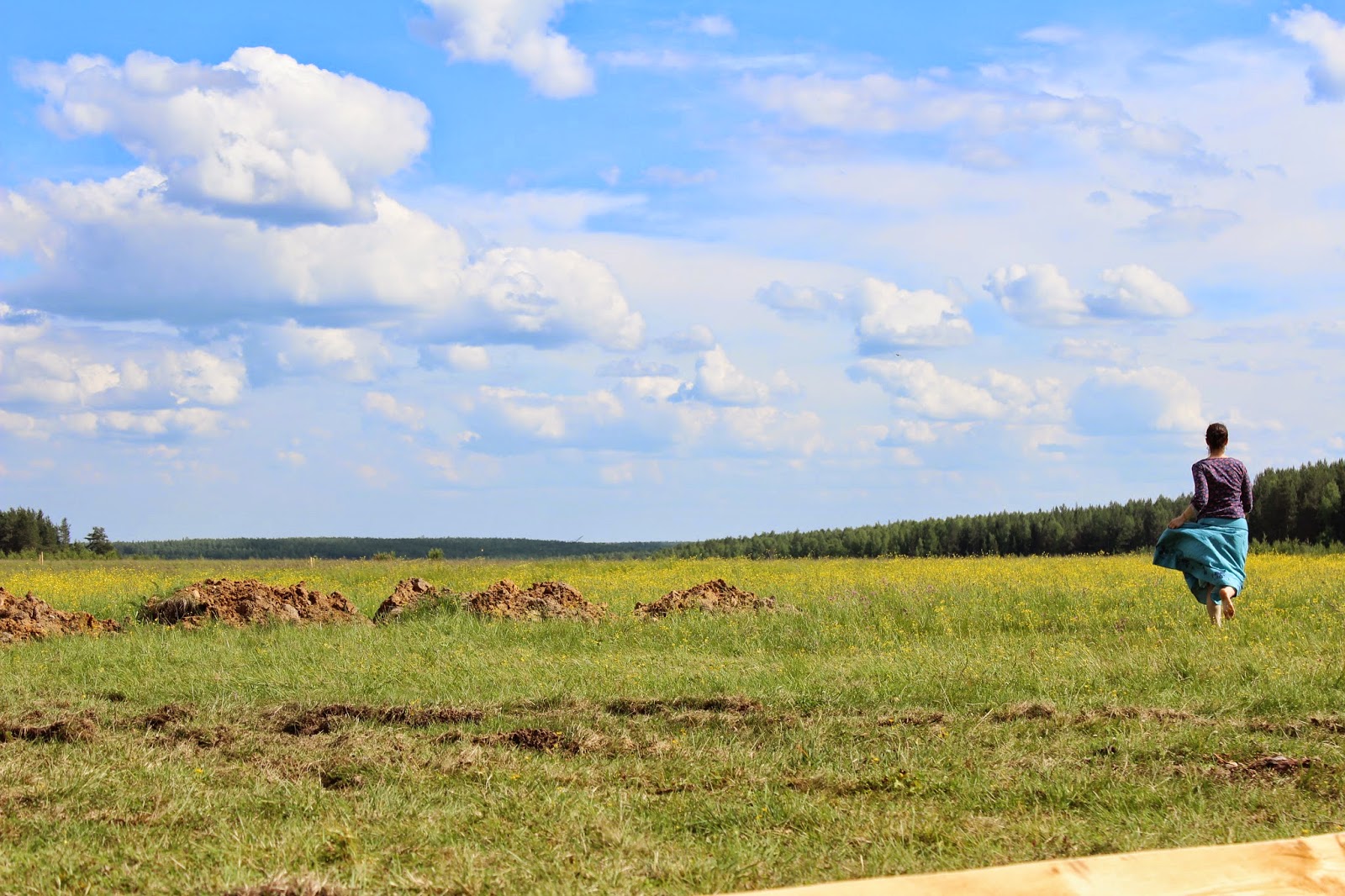 огромное поле рядом с домом, а в лесу полно ягод, грибов..