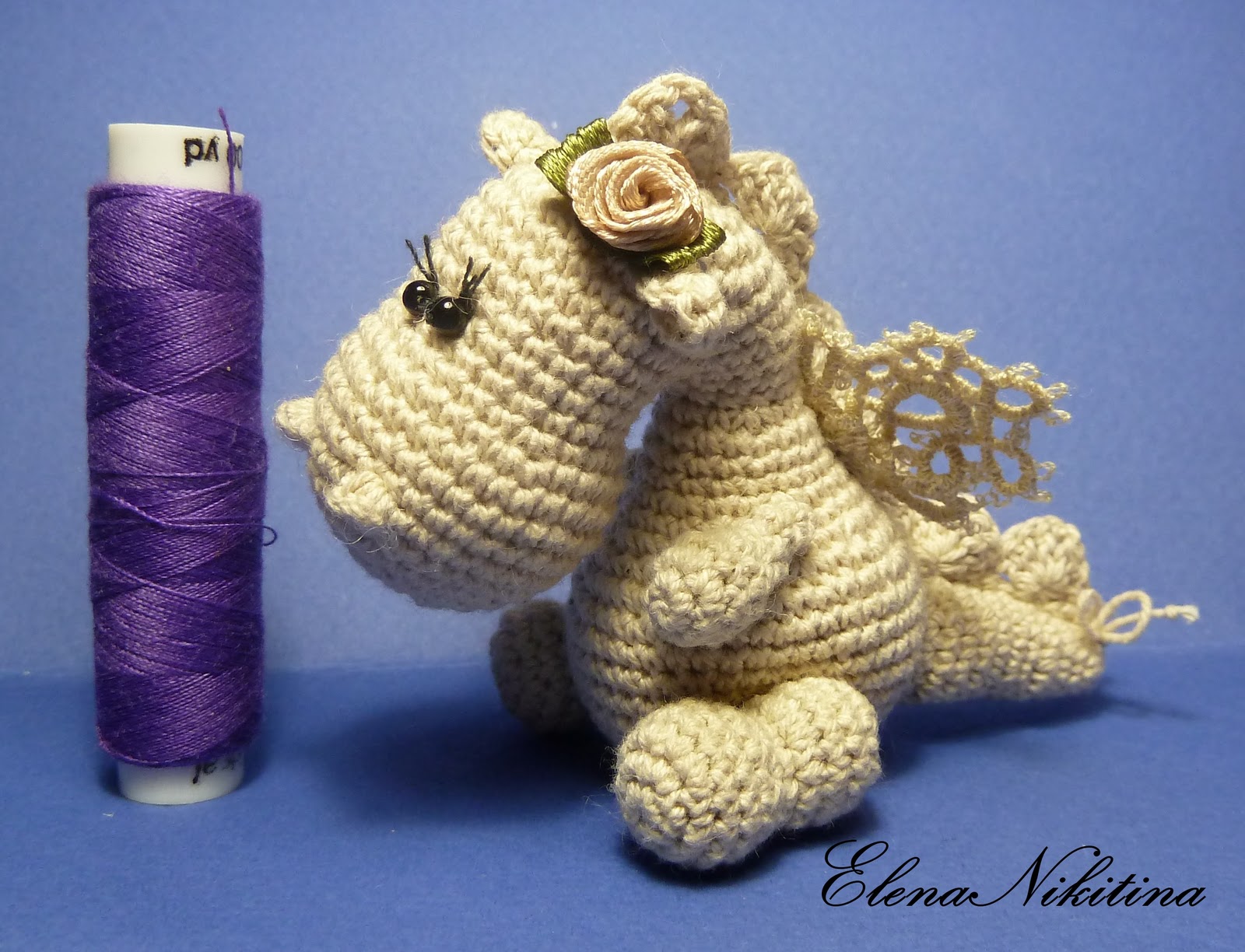 У меня дома поселилось крылатое Чудо! Долго это чудо мне покоя не давало. Летало, летало в голове, но появляться на свет не хотело. Перебирала разные цвета, пряжу, рисовала, блукала по интернету в поисках своего, но так и не выдумалось ничего... А зачем что-то думать, подумала я, когда есть готовое! Лучше всё равно не придумать и... сотворилось чудо по описанию Меджик.