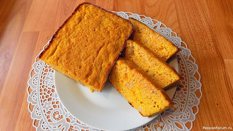 Ингредиенты для морковной запеканки:800 гр. моркови 3 куриных яйца 2 ст. л. сахара 4 ст. л. манной крупы Щепотка соли 50 гр. изюма без косточек приготовление: Изюм замочить в кипятке на 30 мин., слить воду морковь отварить и натереть на мелкой тёрке или измельчить в блендере смешать все ингредиенты, выложить в форму отправляем форму в холодную духовку выпекать при 190 град. 35-40 мин. |
