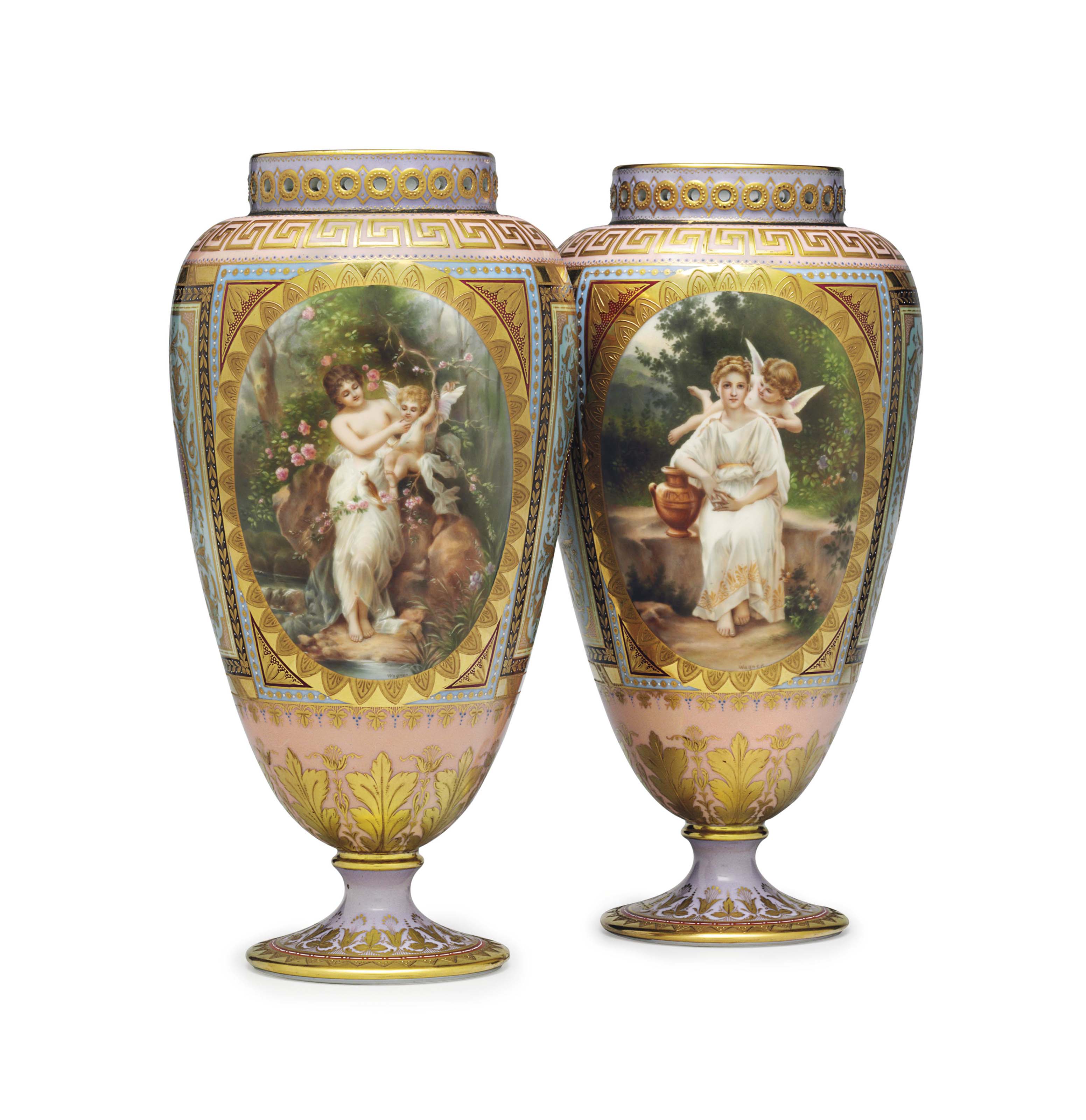 ДВЕ БЕРЛИНСКИЕ (K.P.M.) ФАРФОРОВЫЕ ФИГУРКИ И ДВЕ ПОДСТАВКИ