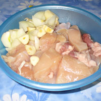200 г жирной свинины,