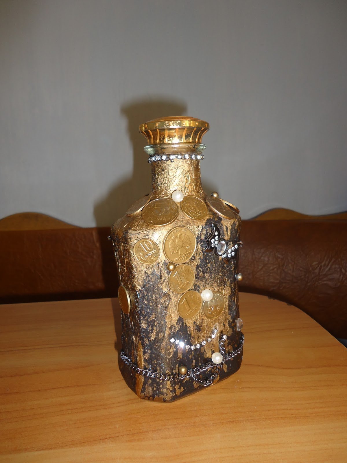 1.Не знаю,почему,но эта бутылочка навевает в моей голове мотив песенки великой Эдит Пиаф,наверное поэтому я назвала ее на французский манер).Сразу скажу-давалась она не легко,постоянно пропадало вдохновение и был творческий тупик.Но,слава Богу,наконец вот она)))Использованный материалы:кружевной носочек,черная и белая акриловые краски,декупажная салфетка,кружево и элементы декора.Если у кого есть замечания,не стесняйтесь высказать-критика тоже очень полезна))))