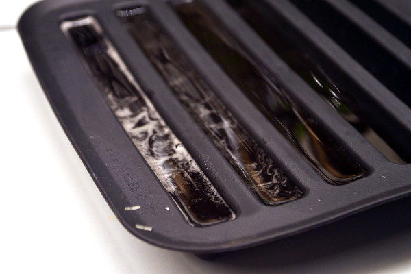 Подготовленный сок с желатином вливаем в продолговатые формы, немного остужаем и отправляем желе в морозильную камеру на 10 минут.