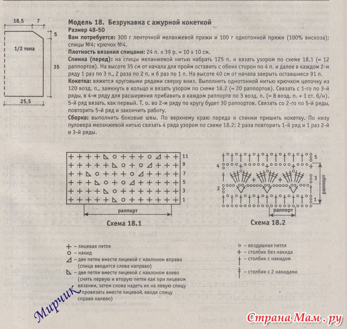 ВЕРХНЯЯ ЧАСТЬ: набрать 25 п.. далее вязать по схеме № 1 и № 2.