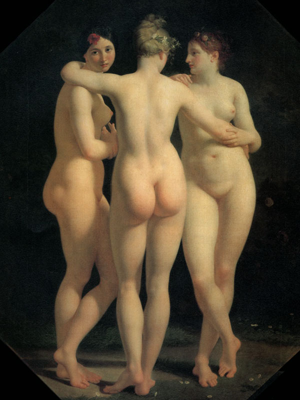 В греко-римской мифологии три грации (в греческом варианте – хариты) – это сестры Аглая, Талия и Эфросина, дочери Зевса (Юпитера) и Эвриномы (дочери Океана).