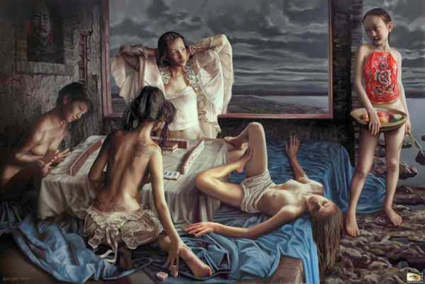 Эта картина очень необычная, на ней изображены четыре девушки, играющие в мацзян (маджонг). В картине скрыт глубокий смысл.