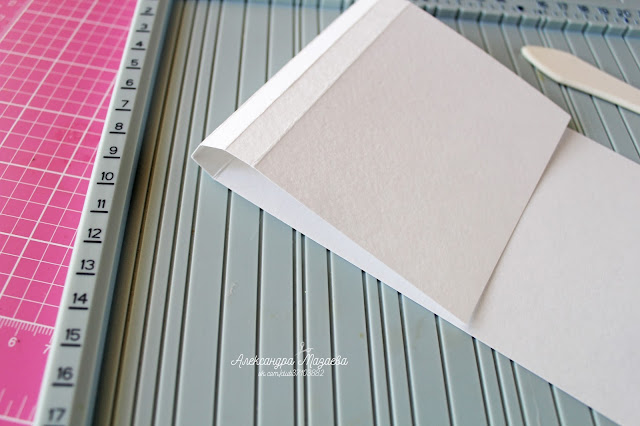 Вторую заготовку приклеиваем на участок между второй и третьей линией биговки