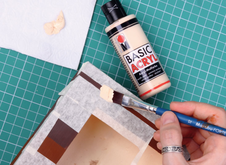 Нанесите на неокрашенные части шкатулки более светлый оттенок и дайте высохнуть. Снимите малярный скотч. |