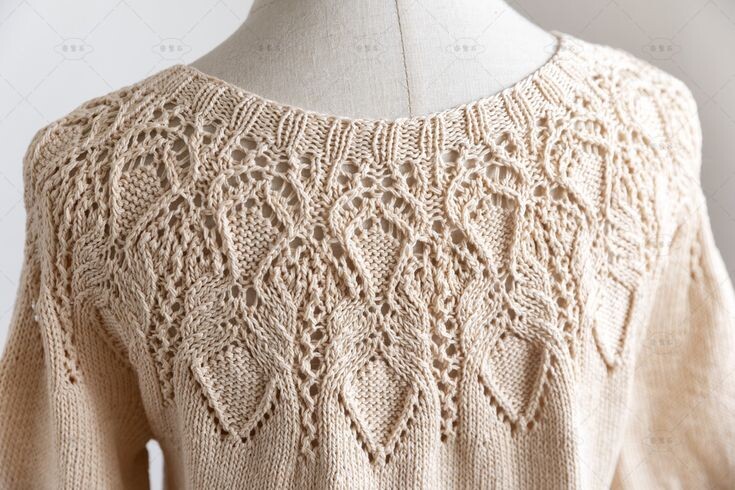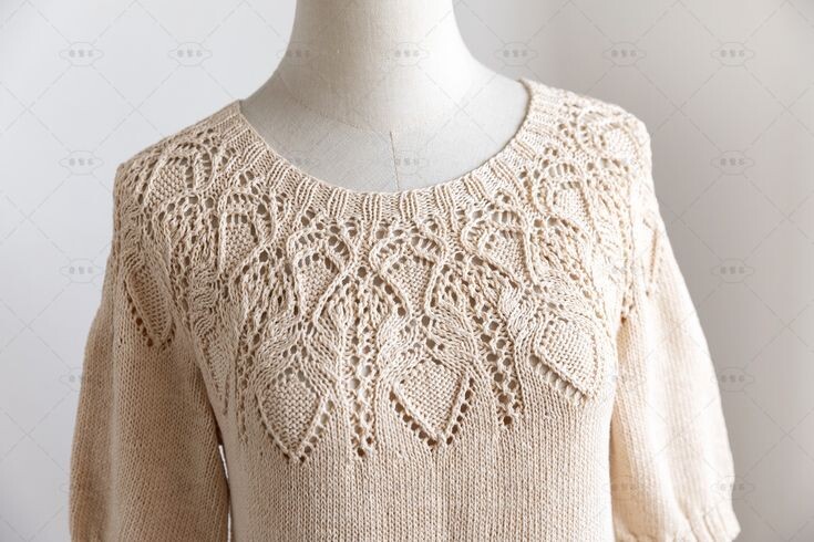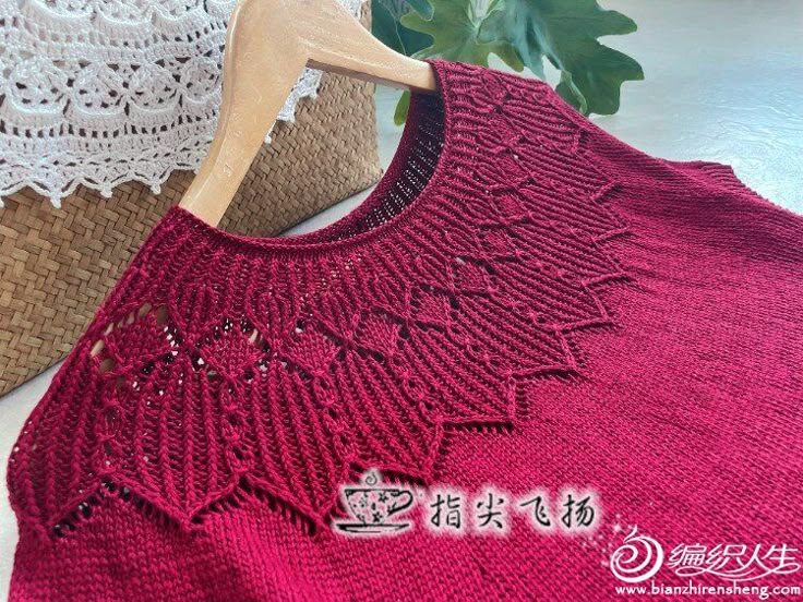 Воротничок вяжется снизу вверх поворотными рядами, с декоративной планкой “зубчики” и оформлением края горловины шнуром i-cord.