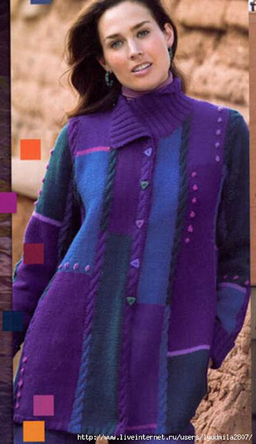 [454x640] Пальто связано крючком узором с рельефными столбиками