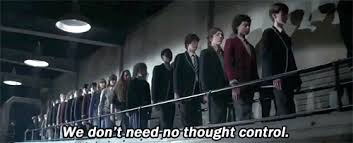 Как только заканчиваются слова — все они разом встают и начинают крушить комнаты, разбивать пожарные щиты, сжигать мебель. В конце видны кадры горящей школы и детей, тащащих куда-то своего учителя. После этого снова показывается Пинк, грустно сидящий за партой и слушающий учителя, и класс, повторяющий его слова.