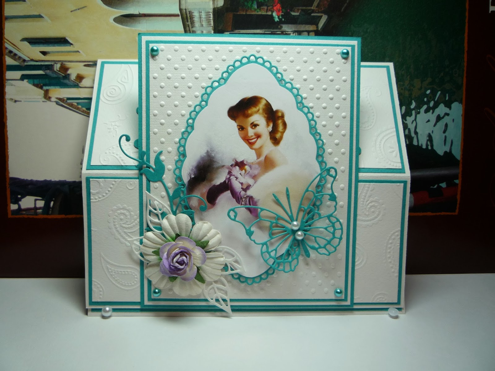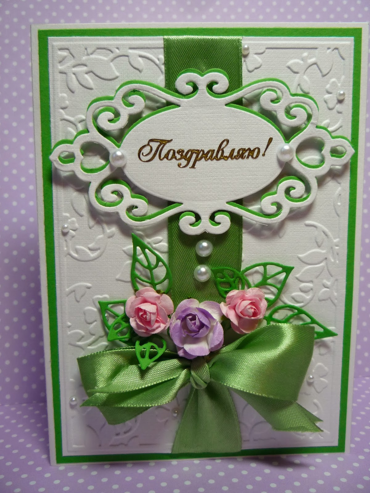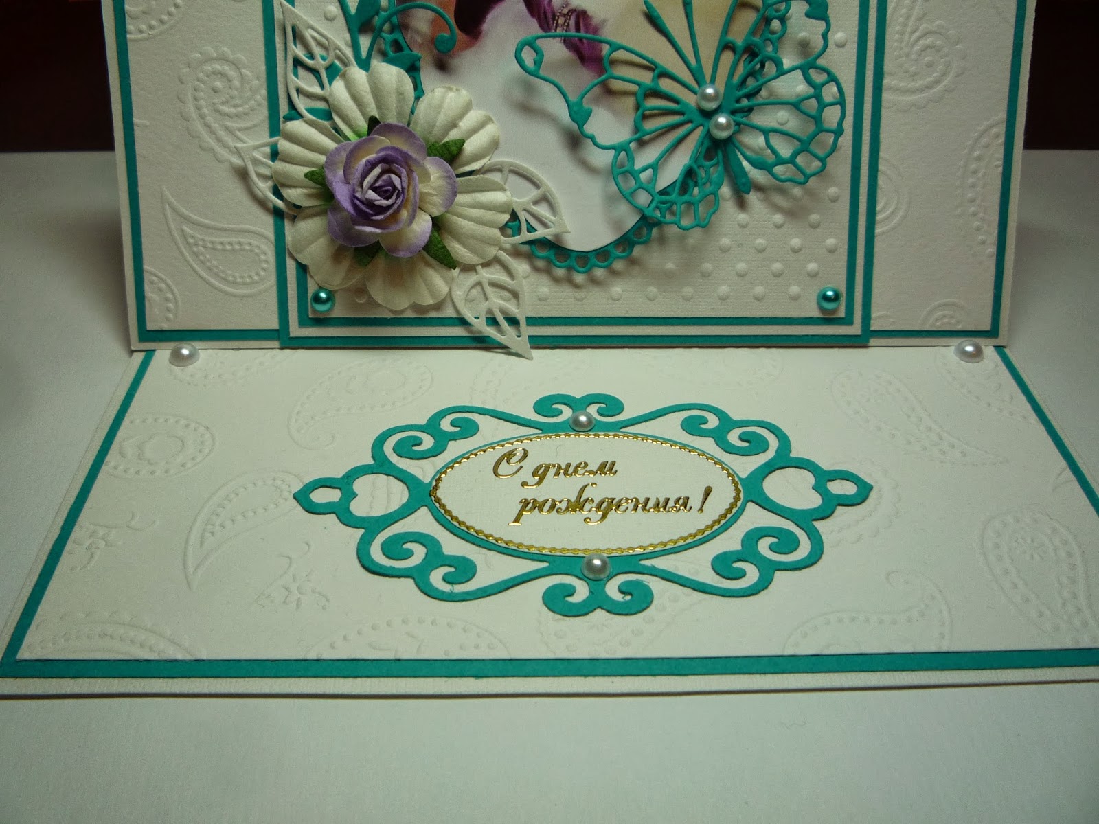 Покажу еще одну открытку сделанную с помощью папки для тиснения. Забывала раньше выложить.